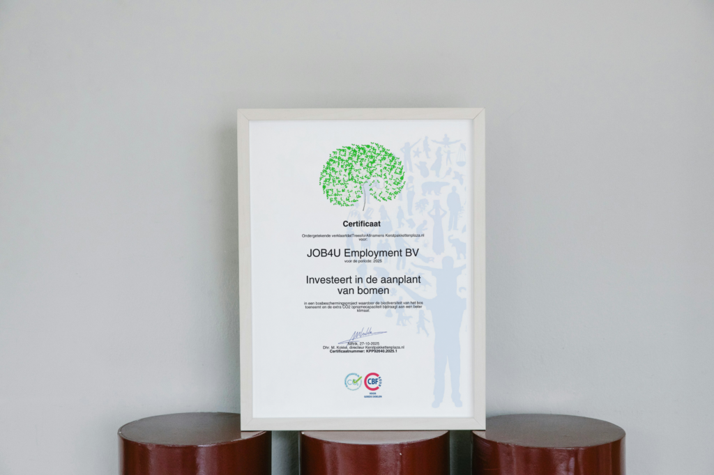 Met trots ontvingen we ons certificaat als erkenning van onze bijdrage aan duurzaamheid en een schonere wereld. Samen met onze partners zetten we ons actief in voor een betere toekomst. Want iedere boom maakt het verschil!
